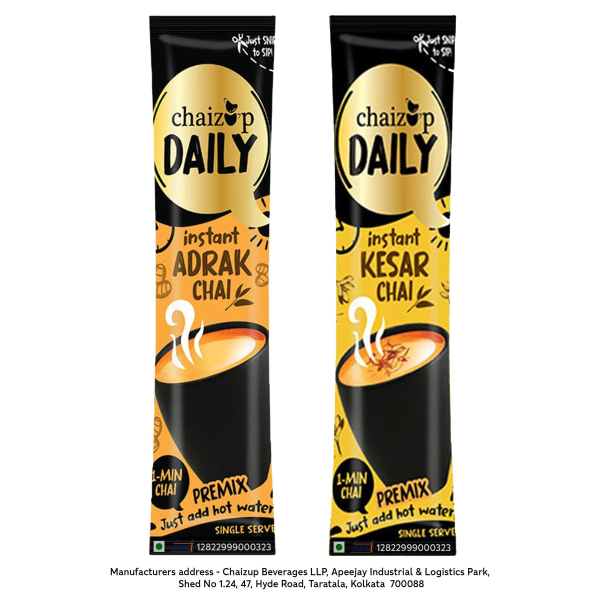 Chaizup Daily 1 Min Instant Assorted Tea Pack - 40 Sachets | Kesar & Adrak Flavours | 40 Servings | 2 Packs (20 Sachets Each) | 280g