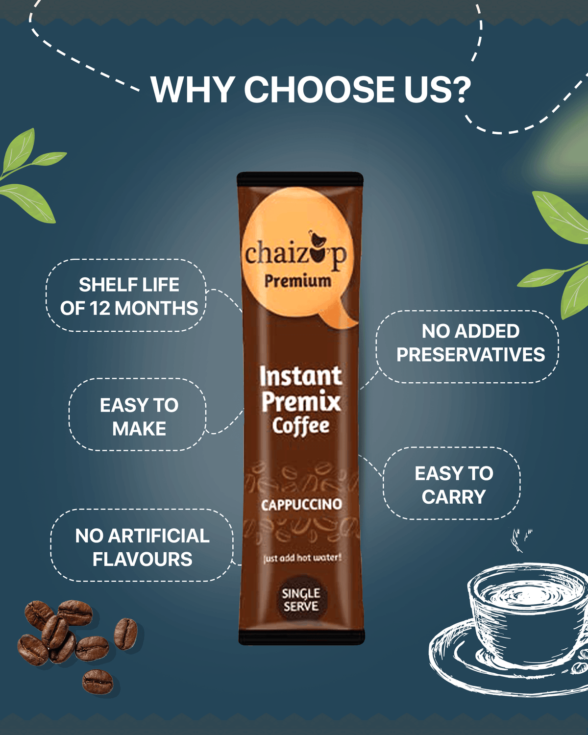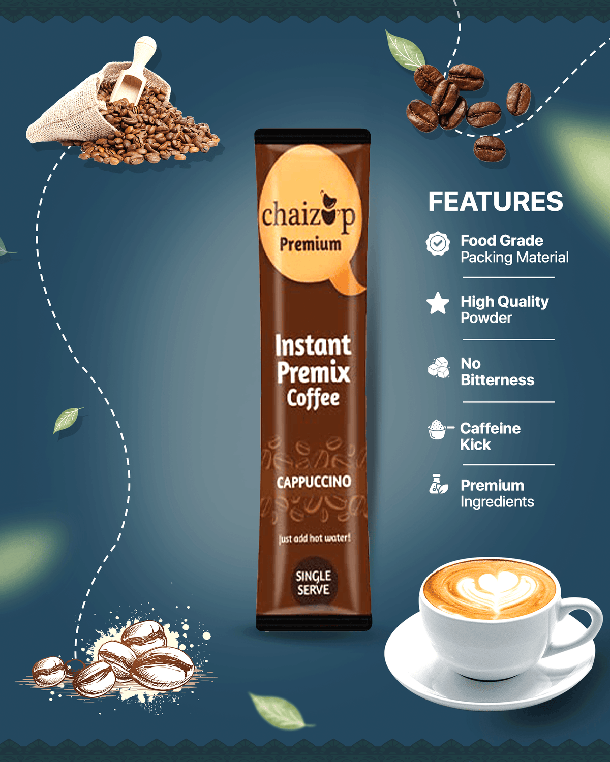 Chaizup Premium 1 Min Instant Cappuccino Coffee Premix - 30 Sachets | Cappuccino Flavours | 30 Servings | 600g
